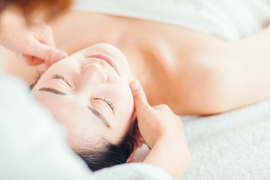 お顔の筋肉、むくみ、たるみにアプローチし、リフトアップに導きます。
