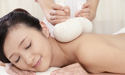タイの伝統療法であるハーブボールでじんわりと温めてからトリートメントを施していきます。